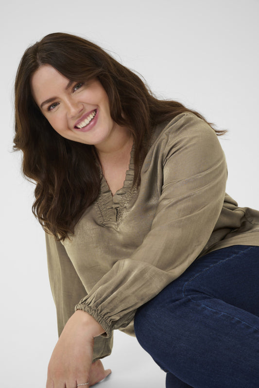 Kaffe Curve blouse met ruffle halslijn 10583774 KCmilia Bruin