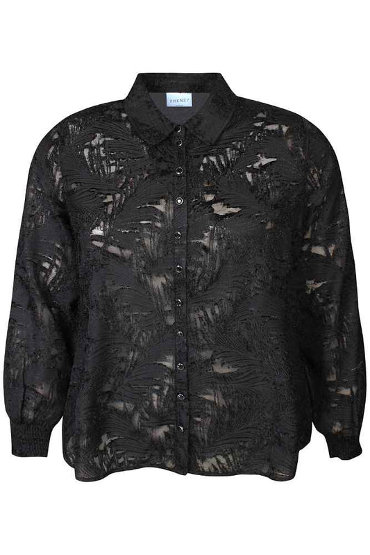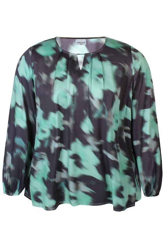 Wasabi blouse met print en lange mouwen W10585 Zwart