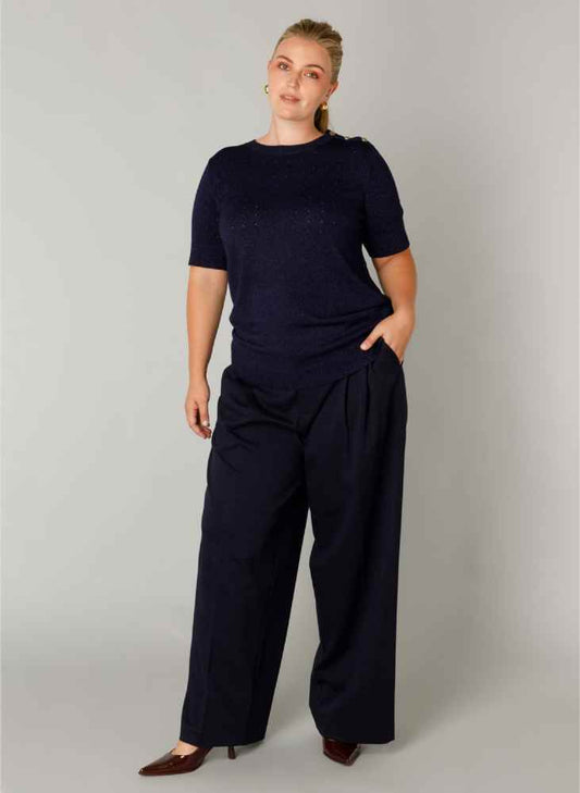 Yest Curve fijngebreide top met korte mouwen A005962 Floortje navy