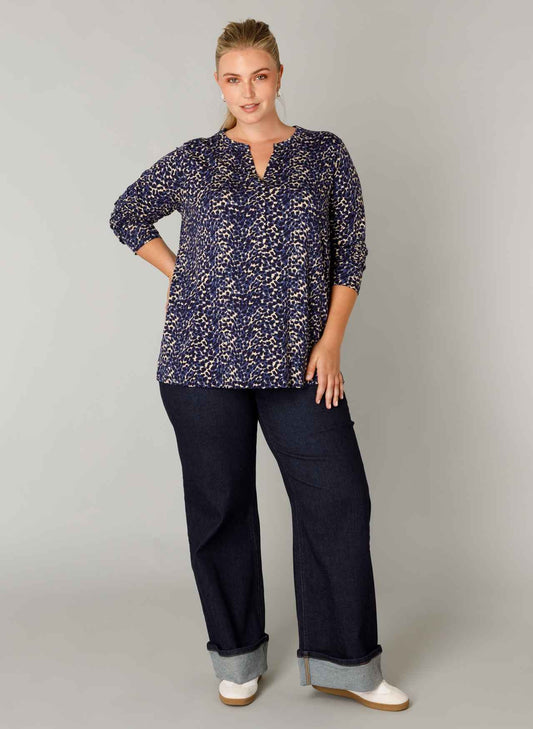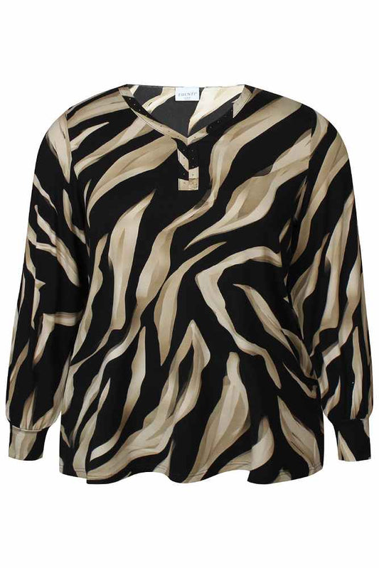 Yest Curve top met panterprint en V-hals A005754 Valery navy