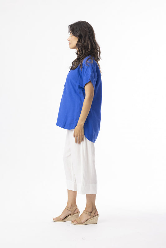 Orientique shirt aangeknipte mouwen 62772 Linen Essentials Top Vne Blauw