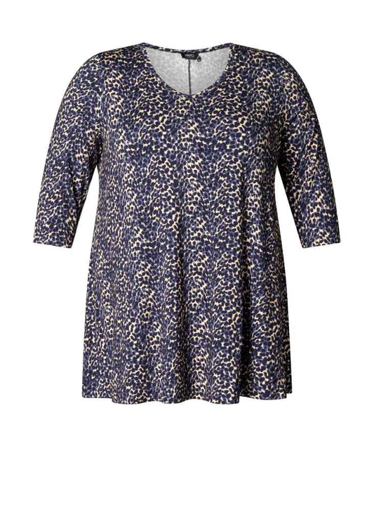 Yest Curve top met panterprint en V-hals A005754 Valery navy