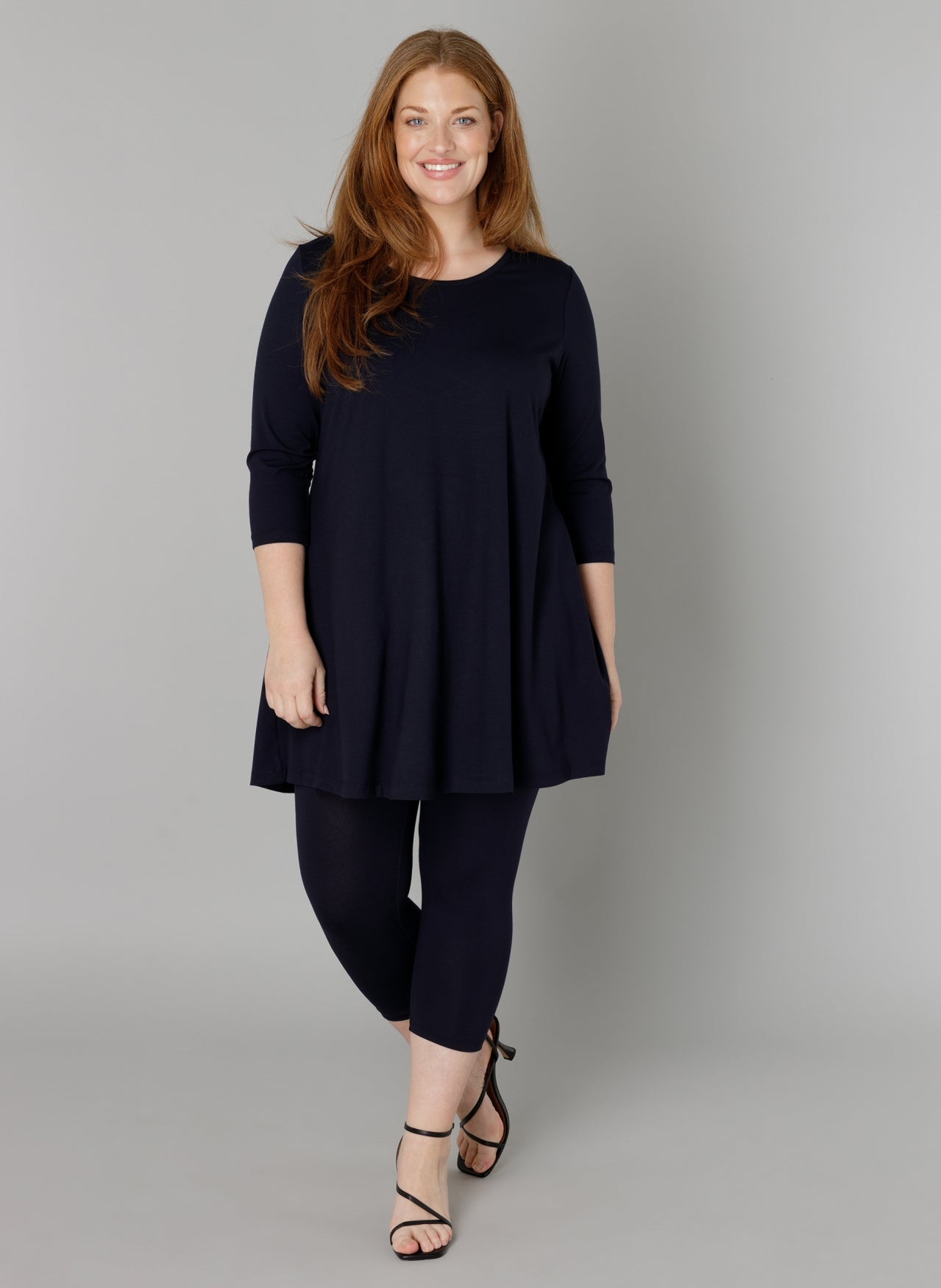 Het Aria shirt van Base Level Curvy is een perfecte mix van comfort en elegantie. De flatterende A-lijn en driekwart mouwen maken dit item ideaal voor elk figuur. Of je het nu draagt op een legging, broek of panty—dit basic shirt mag niet ontbreken in je kast.