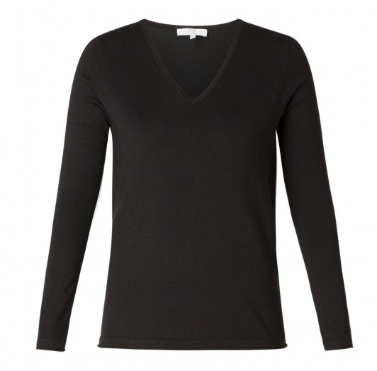 Base Level Curvy fijngebreide trui met V-hals 7000024 Anine Zwart