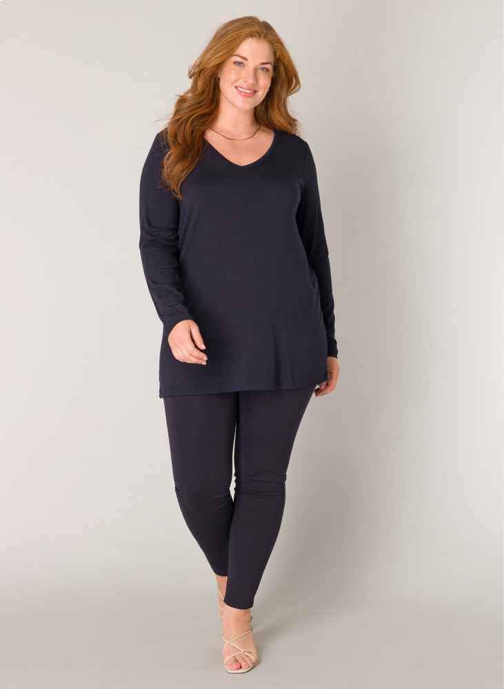 De Alize top van Base Level Curvy is een fijne basic die je eindeloos kunt combineren. Dankzij de V-hals en het stretchmateriaal zit deze top heerlijk comfortabel en flatteert hij mooi bij elke outfit. Ideaal voor onder een vest, blazer of gewoon zo op een jeans of legging.