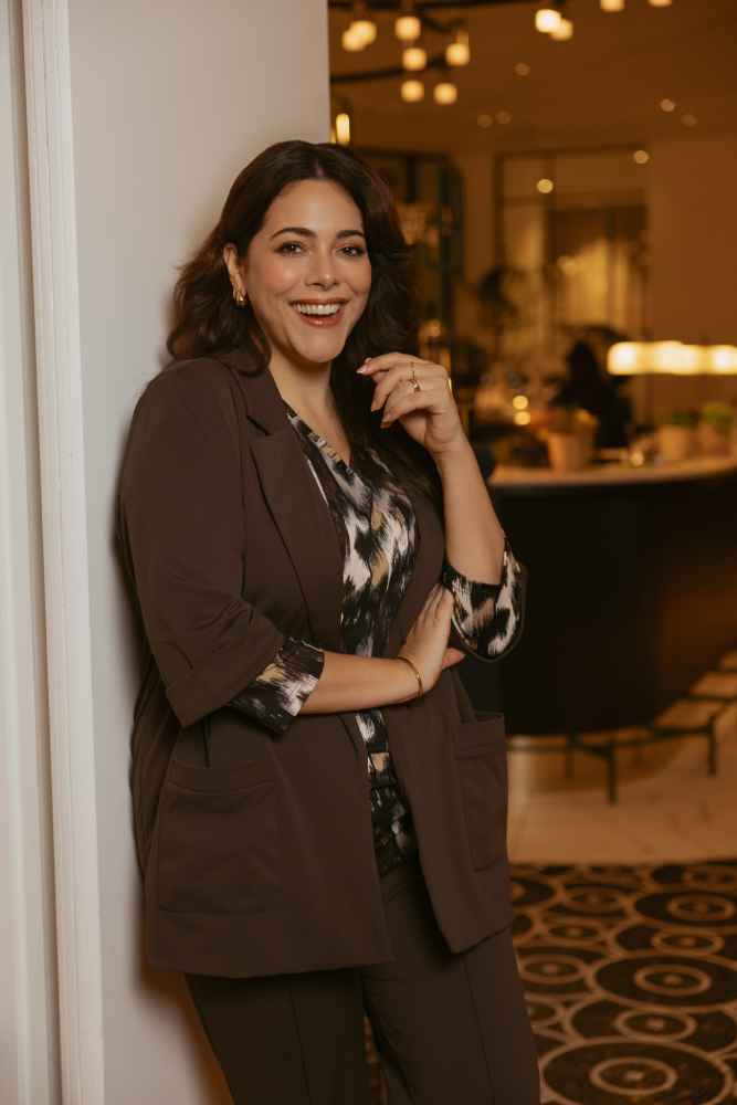 Draag deze blazer over een top of jurk voor een elegante en comfortabele look.