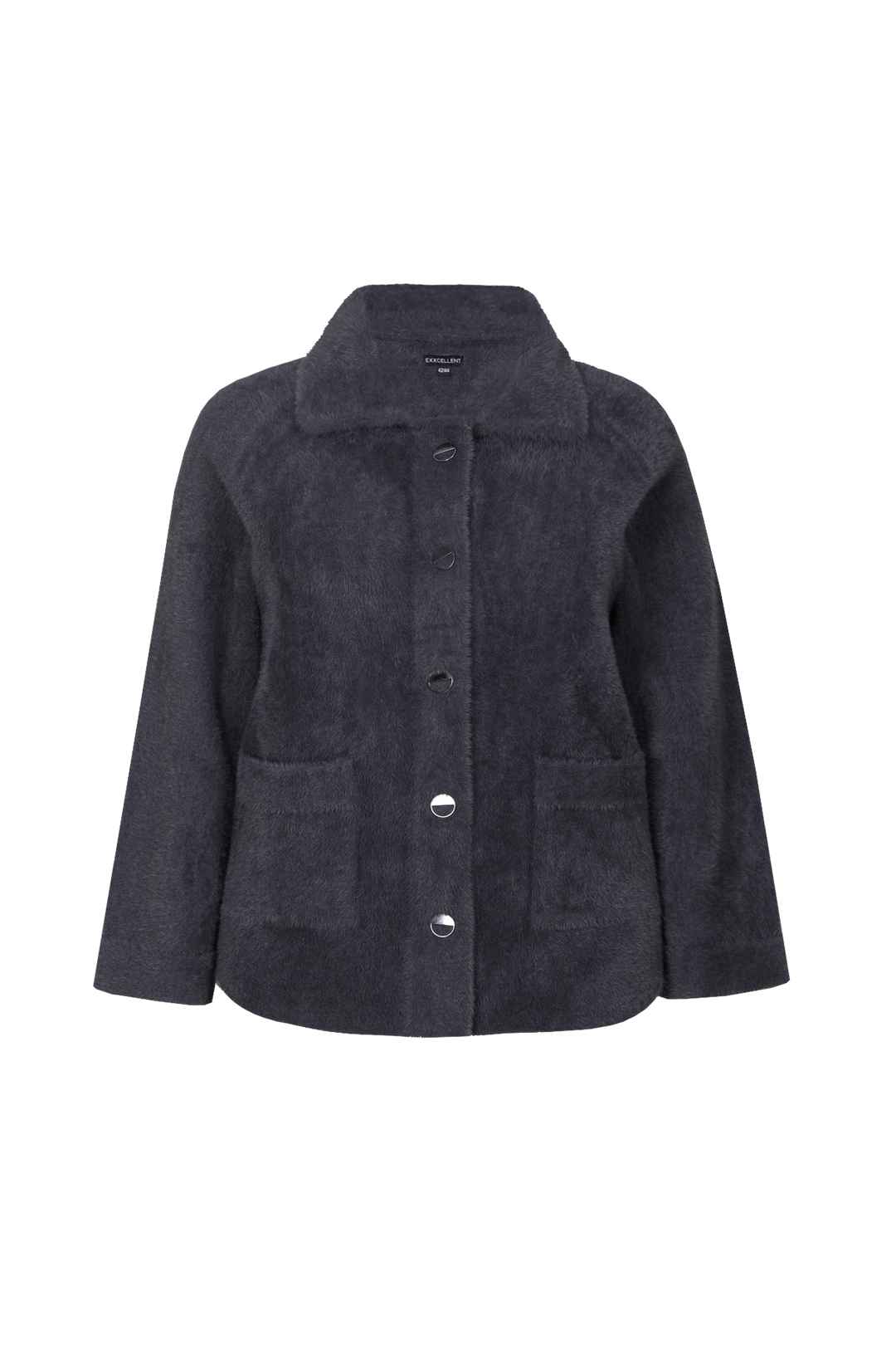 • Pasvorm: recht model met knoopsluiting, kraag en opgestikte zakken