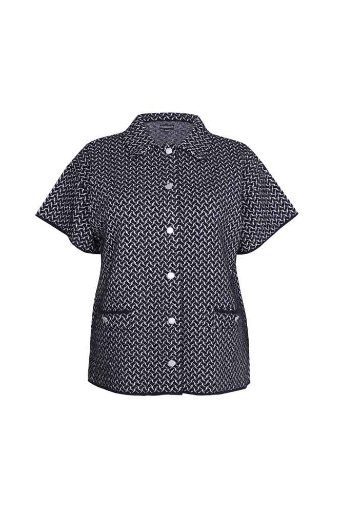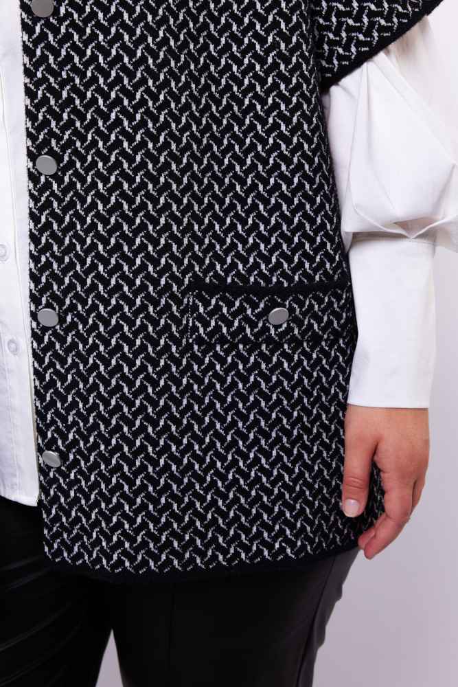 Dit zwart-witte vest van Exxcellent is een echte blikvanger! De speelse structuur, de knoopsluiting en de opgestikte zakken maken hem perfect om je outfit net dat beetje extra te geven — ideaal voor dames met een maatje meer.