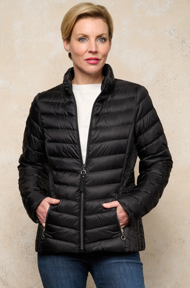 Deze navy jas is precies wat je nodig hebt voor frisse dagen. Licht van gewicht, maar heerlijk warm door de gewatteerde dons. De shaped pasvorm geeft een mooi silhouet zonder te strak te zitten, en de hoge kraag houdt de wind buiten. Een praktische én stijlvolle keuze voor elke dag.
