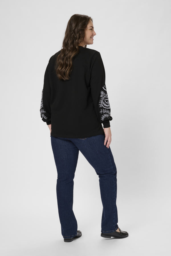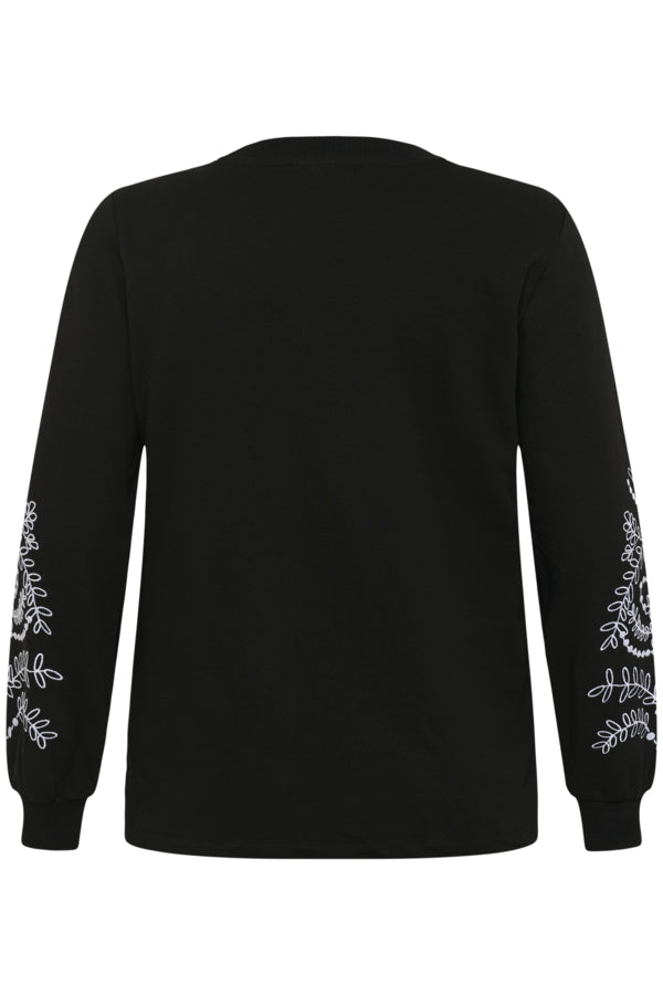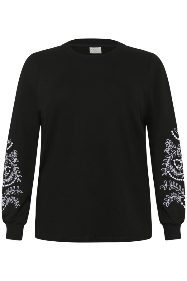 Kaffe Curve trui met geborduurde mouwen 10583649 KCviva Zwart