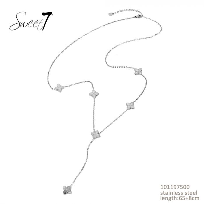 Minimalistisch maar stijlvol: deze zilverkleurige lange ketting van Sweet7 met fijne bloemvormige details past perfect bij elke outfit. Door het duurzame stainless steel blijft hij lang mooi – zelfs bij veelvuldig dragen.