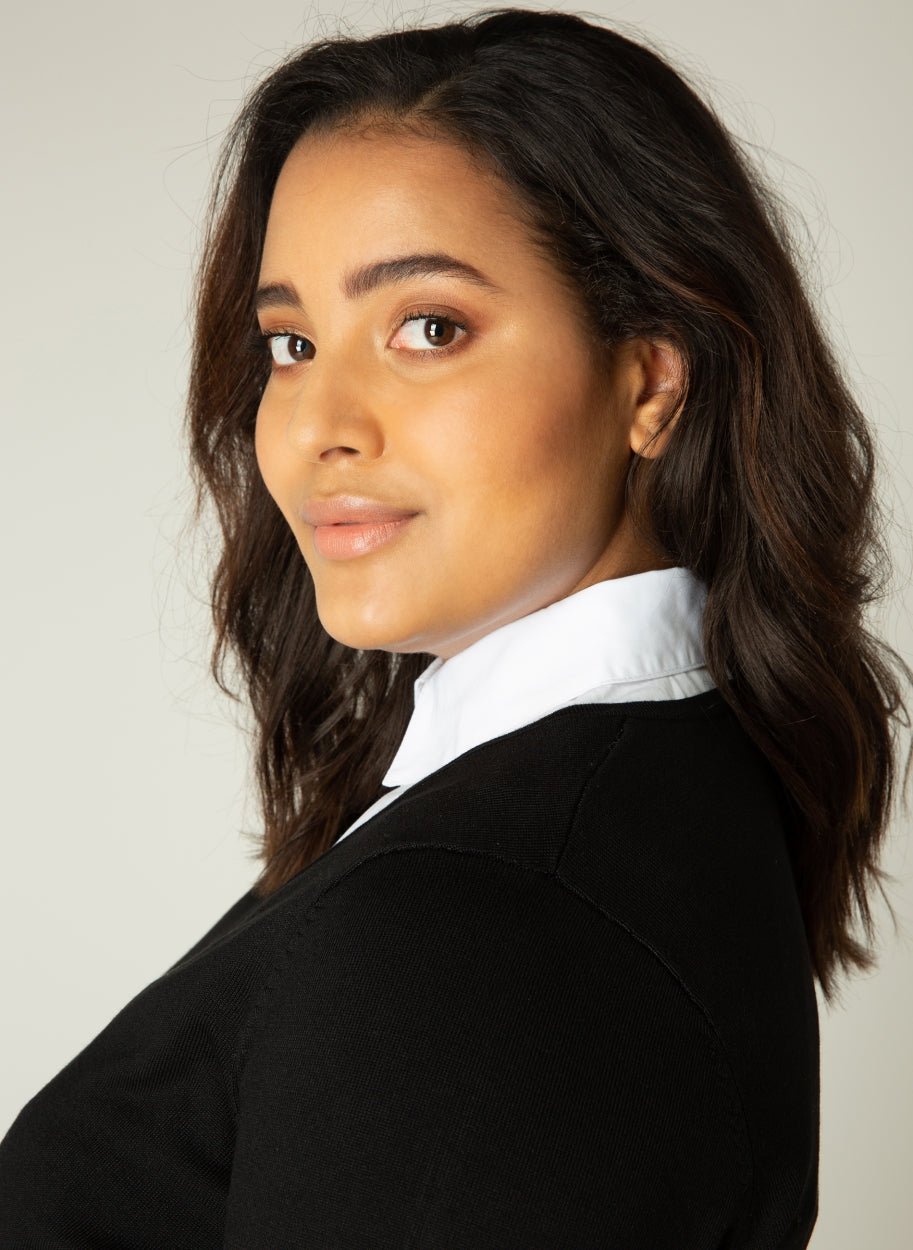 Yolina is een blousekraag, uitgevoerd met een knopenlijst, platte kraag en elastieke bandjes om het kraagje op zijn plek te houden. Yolina is verkrijgbaar in white en black.