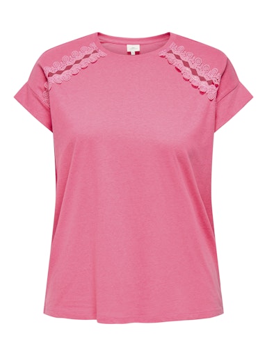 Dit frisse roze shirt van ONLY Carmakoma is de perfecte mix van basic en vrouwelijk. Het speelse kantdetail op de schouders geeft een subtiel romantisch accent, terwijl de zachte stof heerlijk draagt op warme dagen.