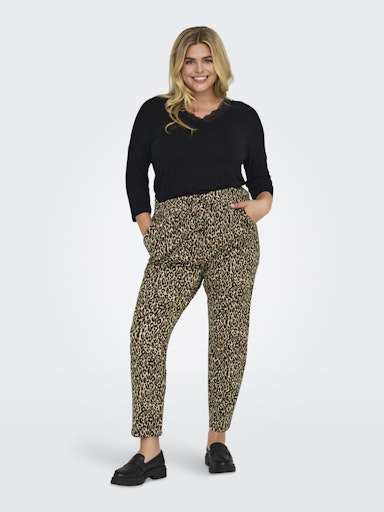 Durf te knallen met deze panterprint broek van ONLY Carmakoma! De zachte stretchstof en elastische tailleband zorgen voor ultiem draagcomfort, terwijl de print je outfit een flinke dosis flair geeft. Combineer ‘m met een zwarte top voor een stijlvolle balans.