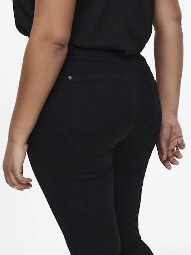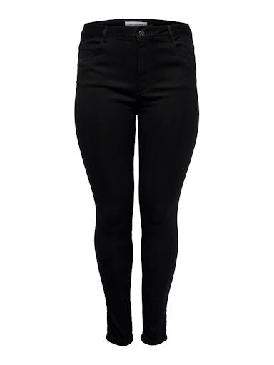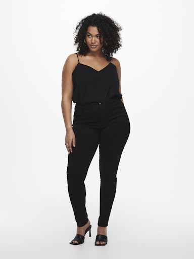 Deze zwarte slimfit jeans van ONLY Carmakoma is een echte musthave voor je garderobe. Dankzij de hoge taille en stretchy stof voelt hij aan als een tweede huid – én hij kleedt mooi af. Perfect te combineren met een top of blouse voor elke gelegenheid.