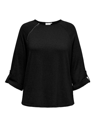 De CARMALBA top van ONLY Carmakoma is de perfecte mix van casual comfort en stijlvolle details. Met de speelse rits op de schouder en de opgerolde mouwen geef je jouw outfit net dat beetje extra flair, zonder in te leveren op gemak.