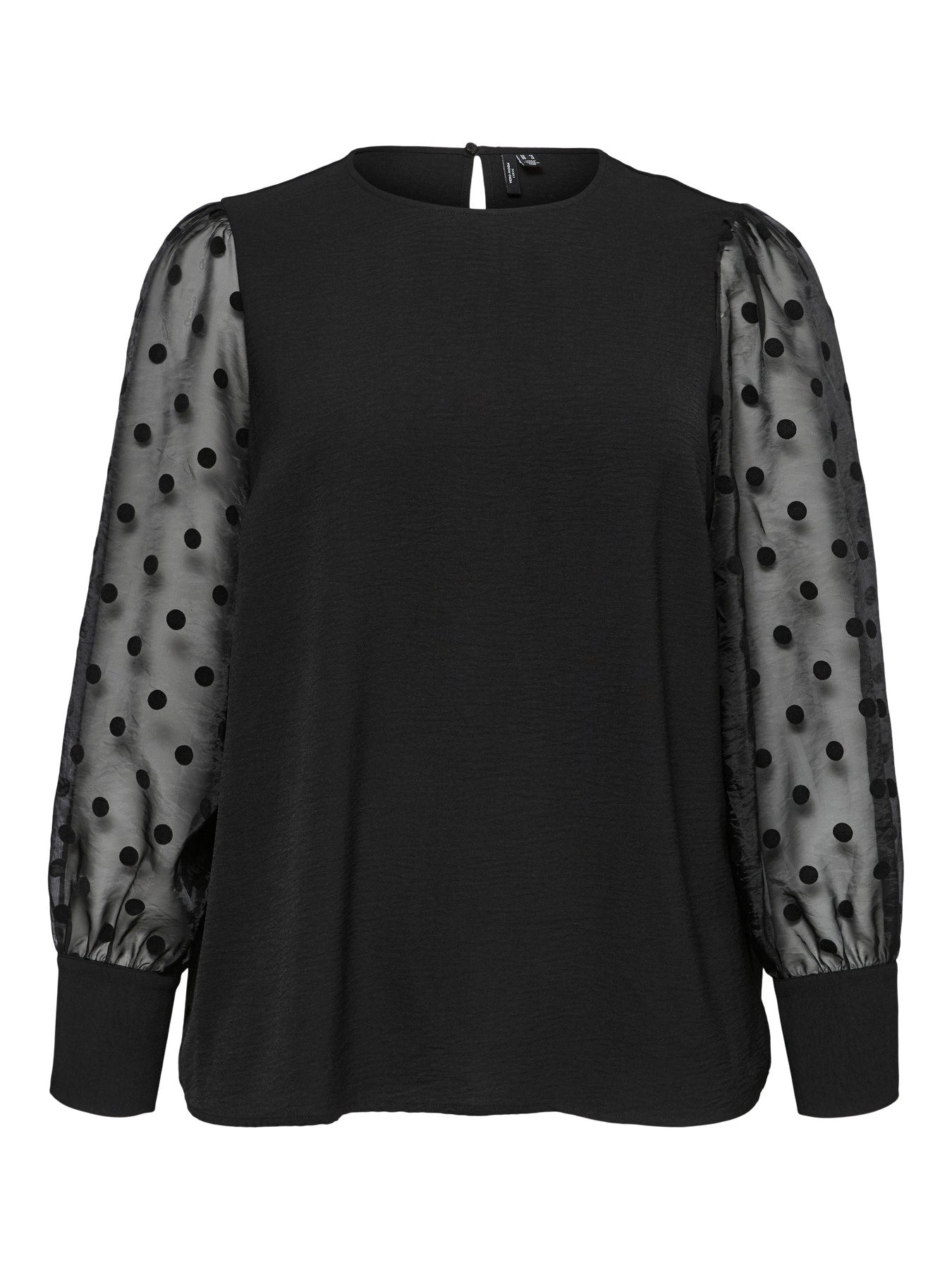 Deze Vero Moda Curve blouse is een echte eyecatcher! De transparante mouwen met stippen geven een speelse en chique uitstraling, terwijl de gladde stof comfortabel draagt. Perfect voor zowel een avondje uit als een feestelijke gelegenheid.