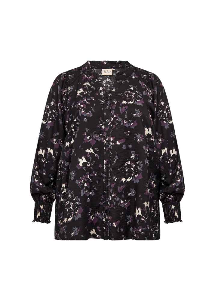 Wasabi blouse met print en lange mouwen W10585 Zwart