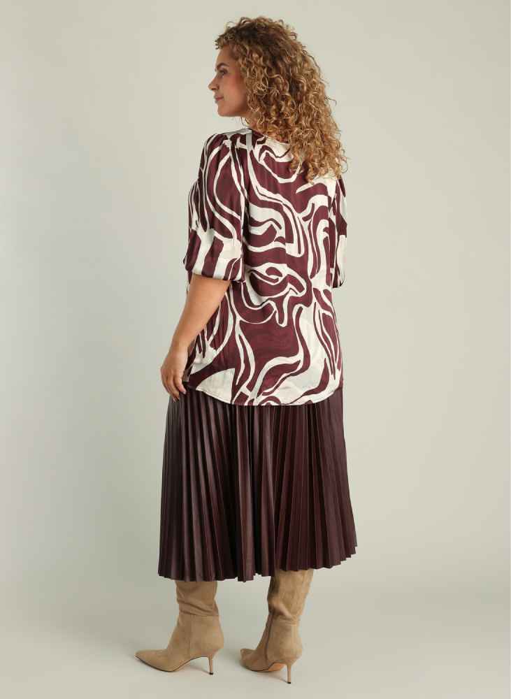 Deze Yest Curve blouse in bordeaux met abstracte print is een elegante keuze voor elke dag. De soepele viscose stof draagt heerlijk luchtig en de losvallende pasvorm maakt het een comfortabel item dat je makkelijk combineert.