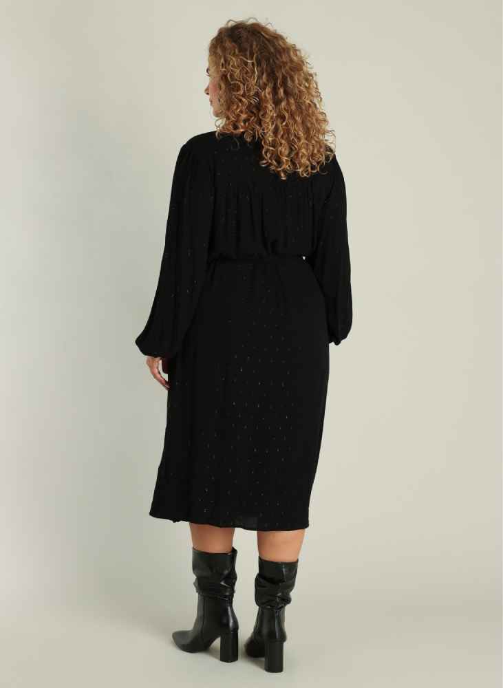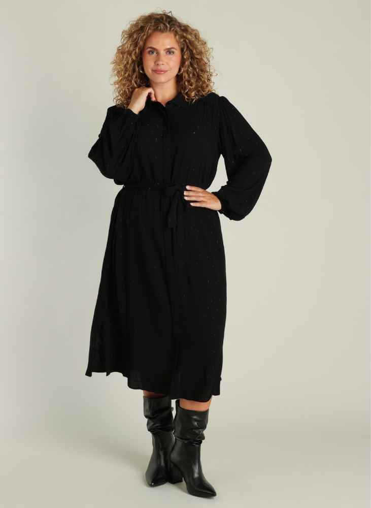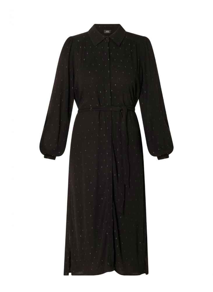 Yest Curve jurk met zilveren lijntjes in de stof A005804 Zwart