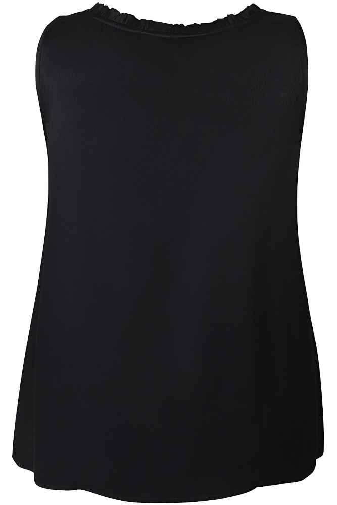 Deze zwarte top van Yest Curve is een echte basic met een stijlvolle twist. De V-hals is afgewerkt met subtiel ruffle detail, waardoor dit mouwloze shirt zowel casual als chic gedragen kan worden. Ideaal om solo te dragen of onder een blazer of vest.